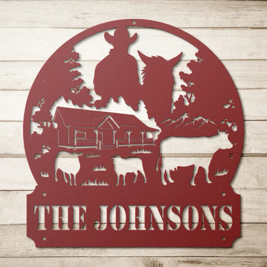Personalized Cowboy Farm Wall Art Decor - Custom Farmhouse Metal Last Name Sign - Farm House Decor