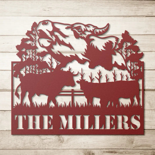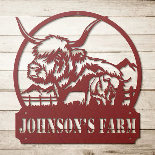 Personalized Highland Cow Metal Wall Art - Custom Farm House Sign - Farm House Decor