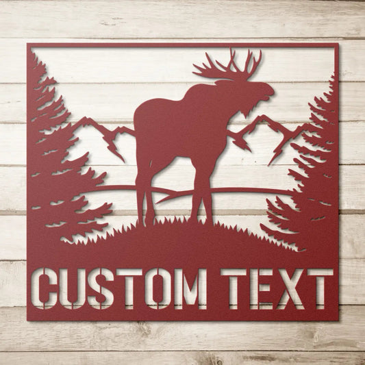Personalized Moose Metal Wall Art - Custom Elk Sign With Name - Farm House Decor