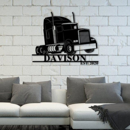 Custom 18 Wheeler Truck Metal Sign - 18 Wheeler Truck Monogram - Metal Decor Wall Art - Heavy Equipment Operator Gifts