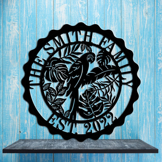 Personality Tropical Metal Wall Decor Parrot Birds With Tropical Plant Leaves Metal Wall Sculpture Hawaiian Themed Hanging Artwork -Metal Art