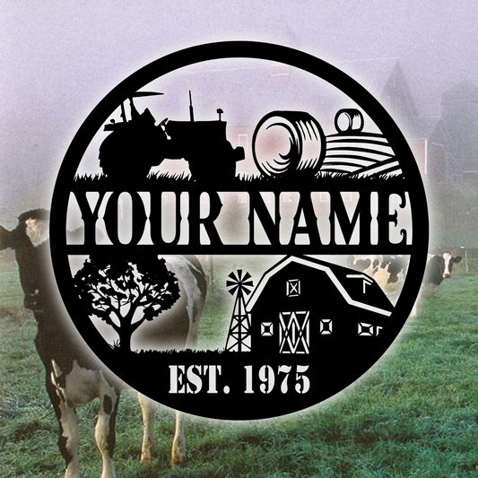 Custom Metal Farm Sign Ranch Sign Barn Sign Farmhouse Decor Family Name Sign Tractor Sign Farmer Giftfarm Scene Metal Sign
