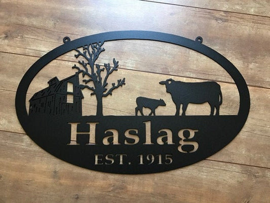 Custom Metal Farm Sign - Custom Cow And Calf Sign - Personalized Family Name Metal Sign - Wedding Gift