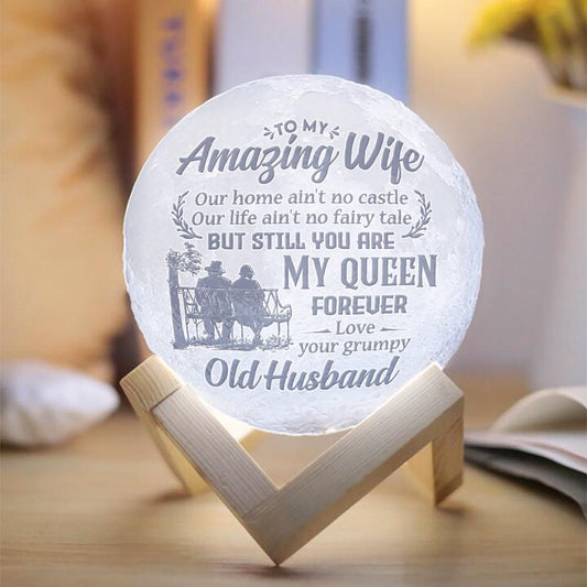 Husband To Wife My Queen Forever 3d Printed Moon Lamp - To My Wife - Valentines Gifts For Wife - Marriage Gifts For Couple - Anniversary Gift
