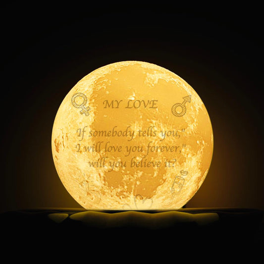 Custom Forever And Always Moon Lamp 3d Print - Engraved Moon Lamp - 3d Printed Moon Lamp