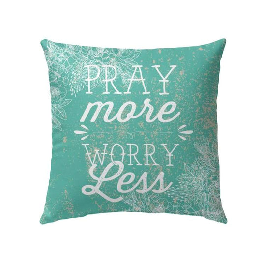 Pray More Worry Less Christian Pillow