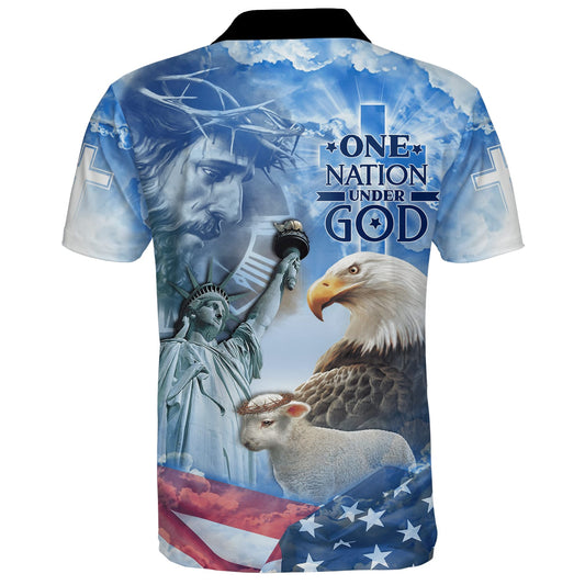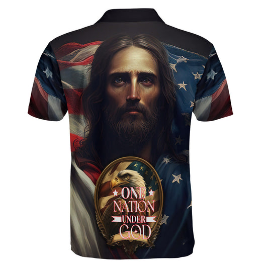One Nation Under God Jesus Christ American Polo Shirt - Christian Shirts & Shorts