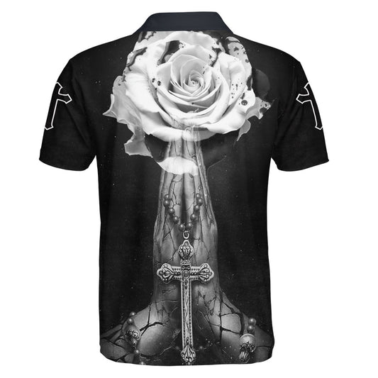 Praying Hands With Cross And Rose Fower Polo Shirt - Christian Shirts & Shorts