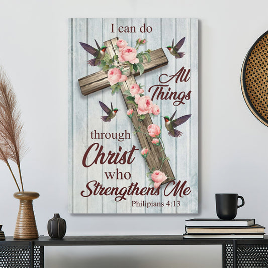 Bible Verse Canvas - Philippians 413 With Flower Cross Canvas Wall Art - Scripture Canvas Wall Art - Ciaocustom