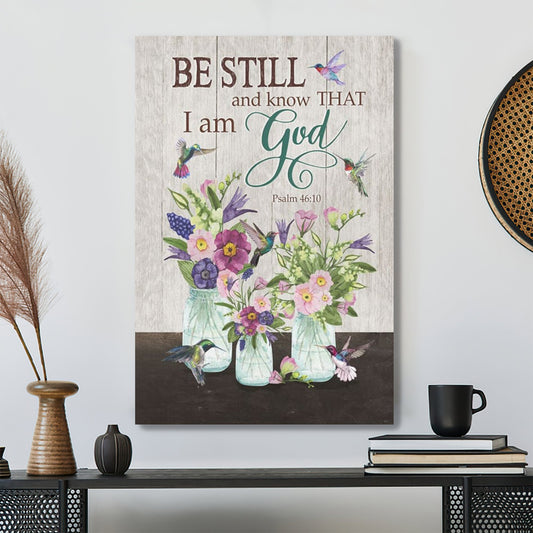 • Bible Verse Canvas - God Canvas - Psalm 4610 Niv Floral Hummingbird Canvas Wall Art - Scripture Canvas Wall Art - Ciaocustom