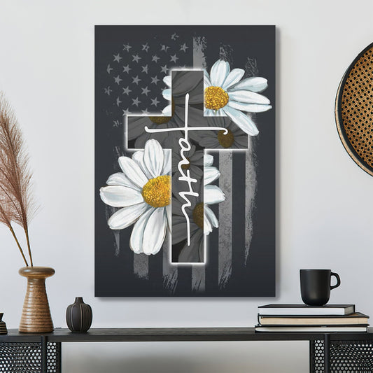 Bible Verse Canvas - Faith Cross Daisy Canvas Wall Art - Scripture Canvas Wall Art - Ciaocustom