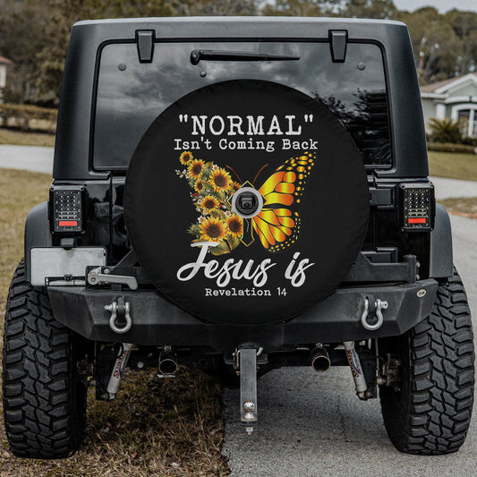 Normal Isn't Coming Back Jesus Is Christian Sunflower Women Spare Tire Cover - Bible Verse Tire Cover