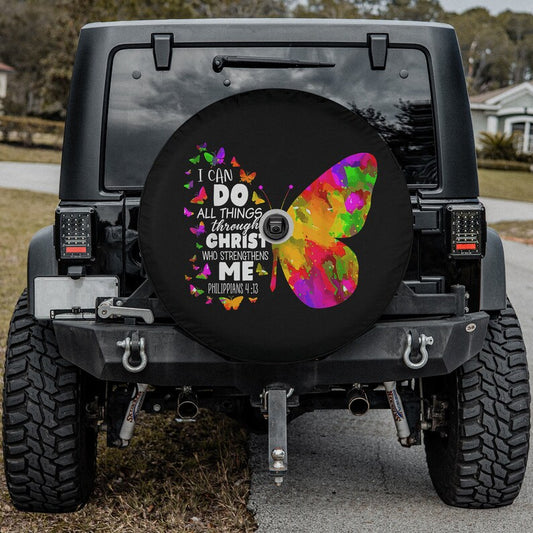 Philippians 4-13 Butterfly Christ Bible Verse Gift For Women Spare Tire Cover - Bible Verse Tire Cover