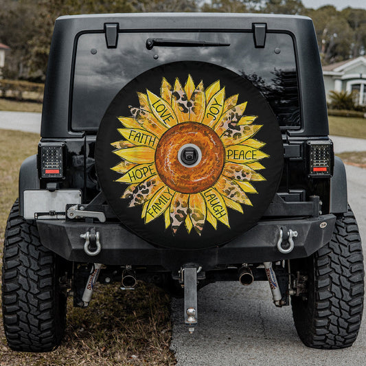 Sunflower Butterfly Faith Hope Love Spare Tire Cover - Bible Verse Tire Cover