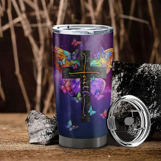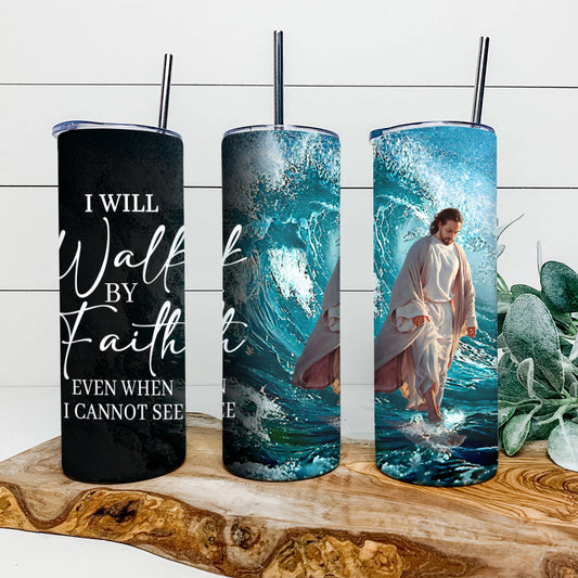 I Will Walk By Faith - Bible Verse Tumbler - Stainless Steel - 20 oz Skinny Tumbler - Tumbler For Cold Drinks - Ciaocustom