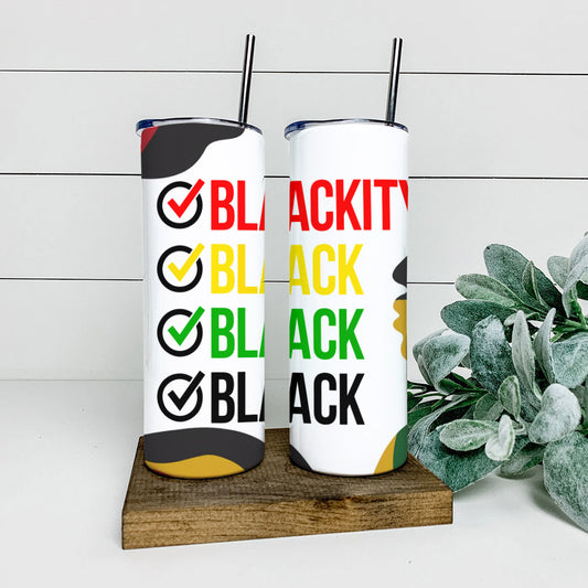 Blackity Black - Juneteenth Tumbler - Stainless Steel Tumbler - 20 oz Skinny Tumbler - Tumbler For Cold Drinks - Ciaocustom