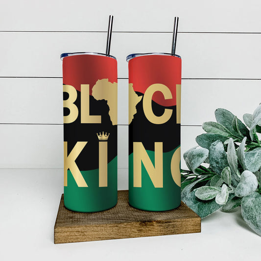 Black King - Juneteenth Tumbler - Stainless Steel Tumbler - 20 oz Skinny Tumbler - Tumbler For Cold Drinks - Ciaocustom