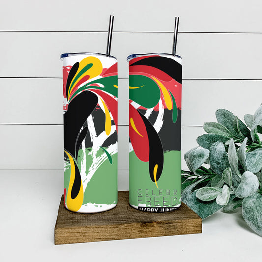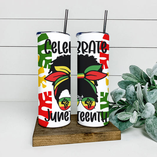 Celebrate - Juneteenth Tumbler - Stainless Steel Tumbler - 20 oz Skinny Tumbler - Tumbler For Cold Drinks - Ciaocustom