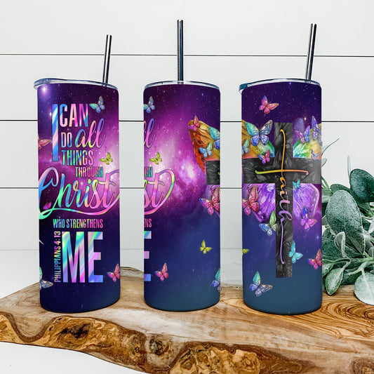 I Can Do All Things Through Christ - Tumbler For Keeping Hot Cold Drinks - Stainless Steel 20 oz Skinny Tumbler - Gift For Christian - Ciaocustom