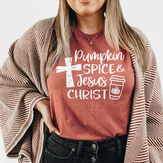 Pumpkin Spice & Jesus Christ Tee Shirts For Women - Christian Shirts for Women - Religious Tee Shirts