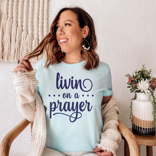 Livin' On A Prayer Tee Shirts For Women - Christian Shirts for Women - Religious Tee Shirts