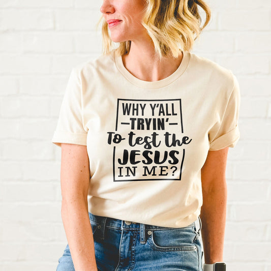 Why Ya'll Tryin To Test The Jesus In Me Tee Shirts For Women - Christian Shirts for Women - Religious Tee Shirts