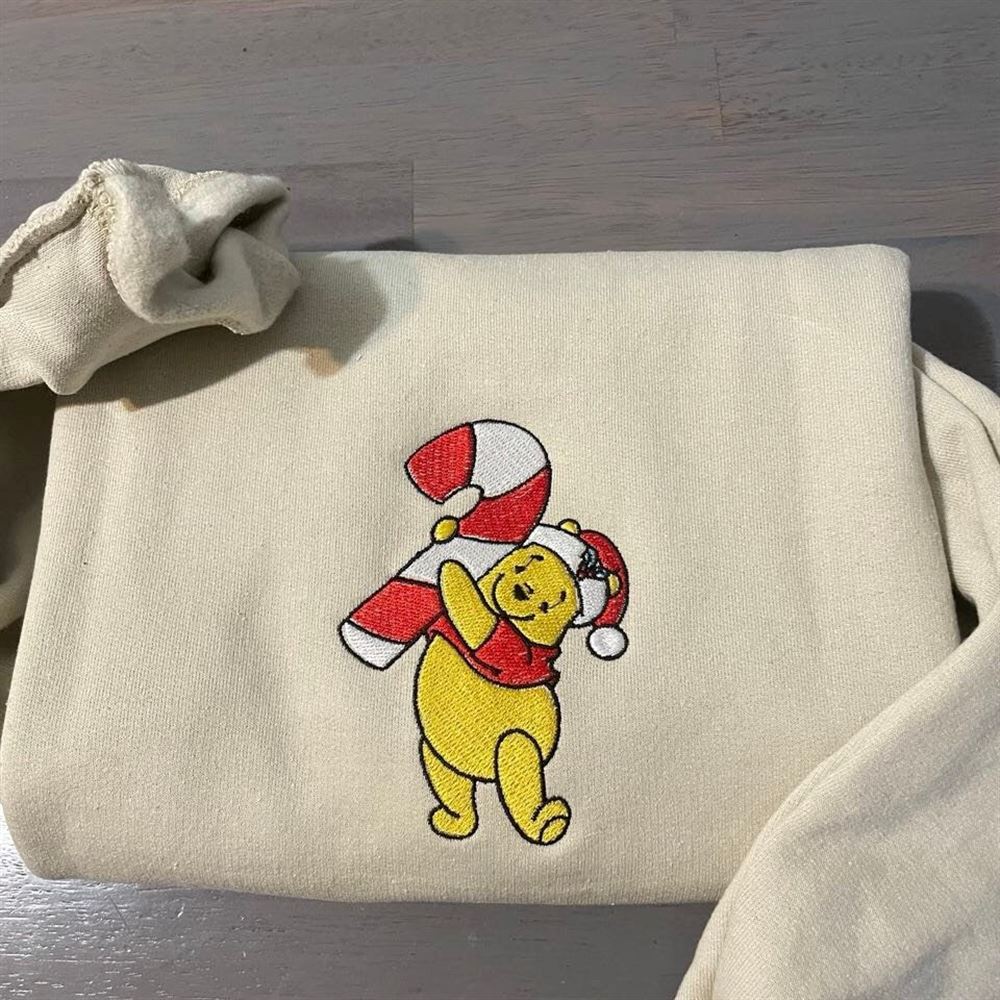 Christmas Winnie The Pooh Embroidered Sweatshirt, Women's Embroidered Sweatshirts