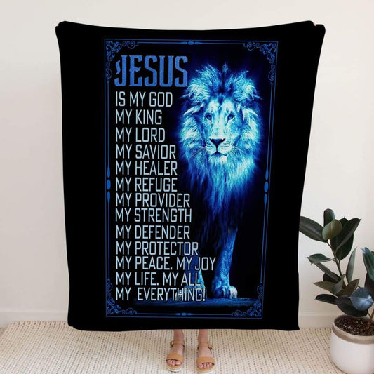 Jesus The Lion Of Judah Is My God Fleece Blanket - Christian Blanket - Bible Verse Blanket