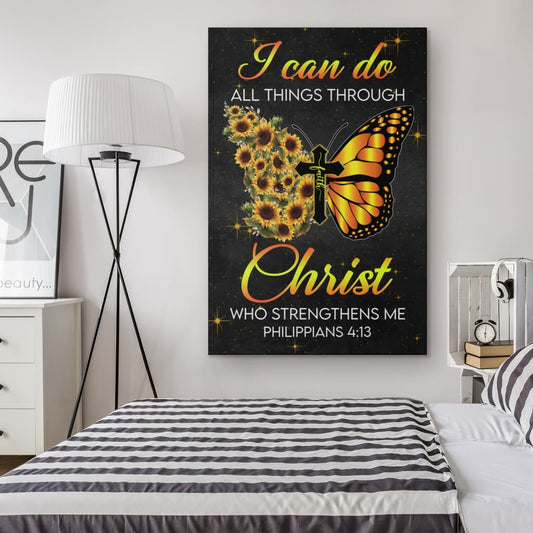 Butterfly Cross Faith I Can Do All Things Through Christ Canvas Wall Art - Christian Canvas Prints - Bible Verse Canvas