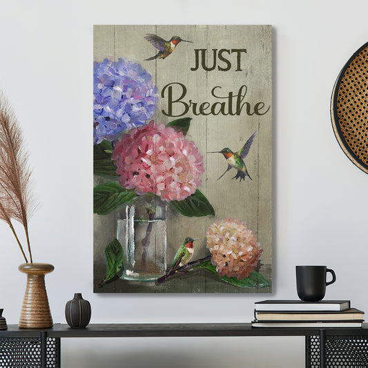 Hydrangea And Hummingbird - Just Breathe Canvas Wall Art - Bible Verse Canvas - Ciaocustom