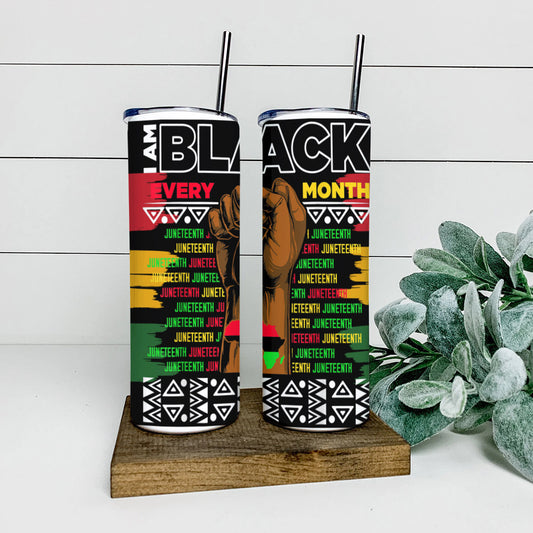 I Am Black Every Month - Juneteenth Tumbler - Stainless Steel Tumbler - 20 oz Skinny Tumbler - Tumbler For Cold Drinks - Ciaocustom