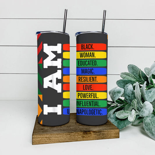 I Am Black Woman - Juneteenth Tumbler - Stainless Steel Tumbler - 20 oz Skinny Tumbler - Tumbler For Cold Drinks - Ciaocustom
