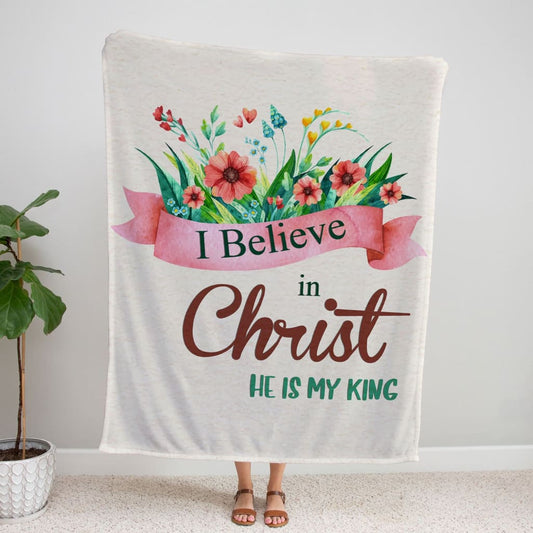 I Believe In Christ He Is My King Fleece Blanket - Christian Blanket - Bible Verse Blanket