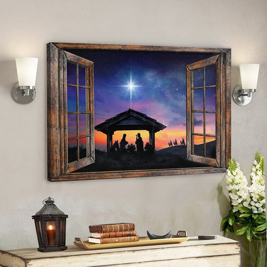 Landscape Jesus Canvas Prints - Bible Verse Canvas - God Wall Art - Wooden Window Beautiful Halo Night - Jesus Christ Poster - Ciaocustom