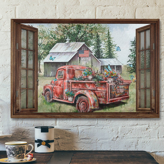 Old Red Truck On Peaceful Farm Canvas Wall Art - Ciaocustom