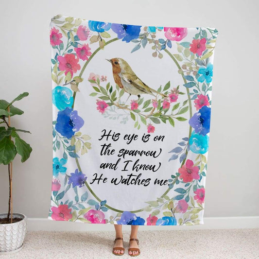 His Eye Is On The Sparrow Fleece Blanket - Christian Blanket - Bible Verse Blanket