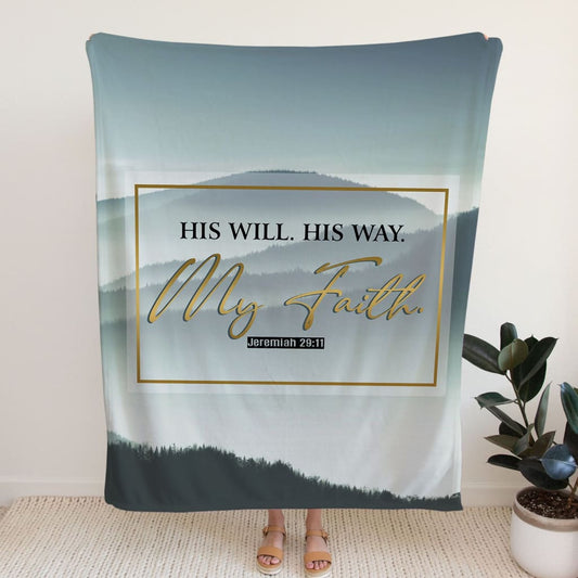 His Will His Way My Faith Jeremiah 2911 Mountain Fleece Blanket - Christian Blanket - Bible Verse Blanket