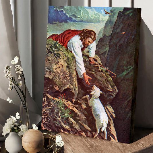 Jesus Reaching For A Lost Sheep Canvas Wall Art - Jesus Canvas Pictures - Christian Wall Art