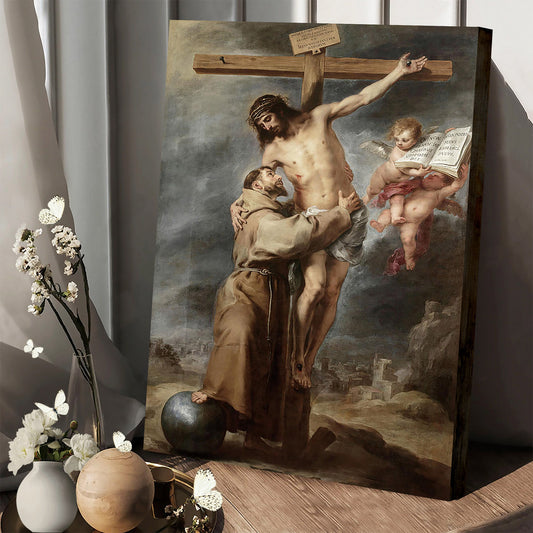 Saint Francis Embracing Christ, 1669 Canvas Wall Art - Jesus Canvas Pictures - Christian Wall Art