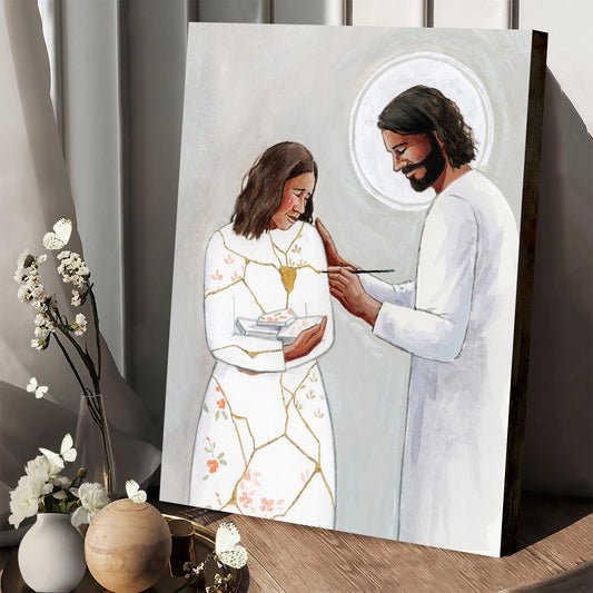 He Binds Up The Broken Hearted Kintsugi Christ Jesus - Jesus Canvas Art - Christian Wall Art