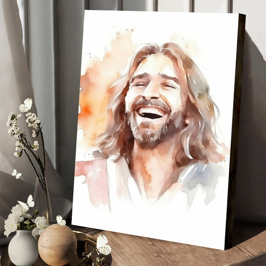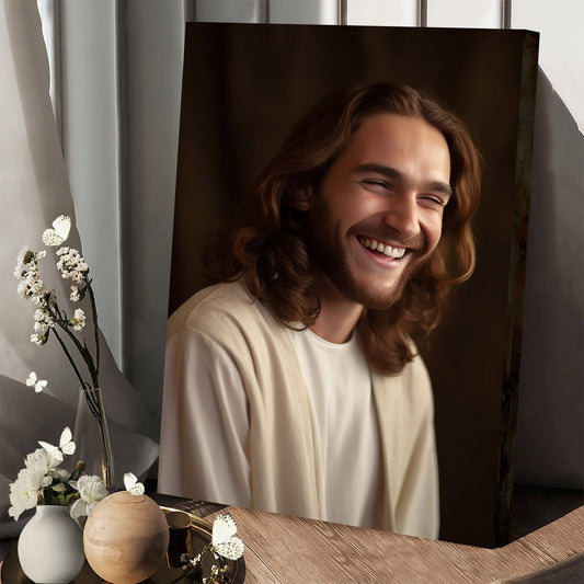 Jesus Art Christ Portrait Laughing Christ Painting - Jesus Canvas Art - Christian Wall Canvas