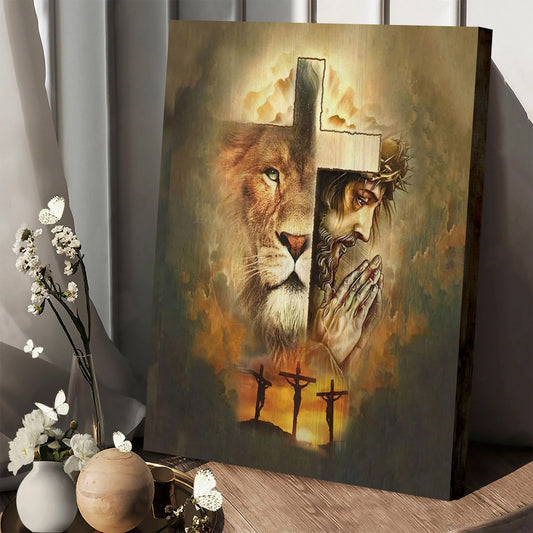 Jesus Lion Cross Tempered Glass Printing 1 - Jesus Canvas Pictures - Christian Wall Art
