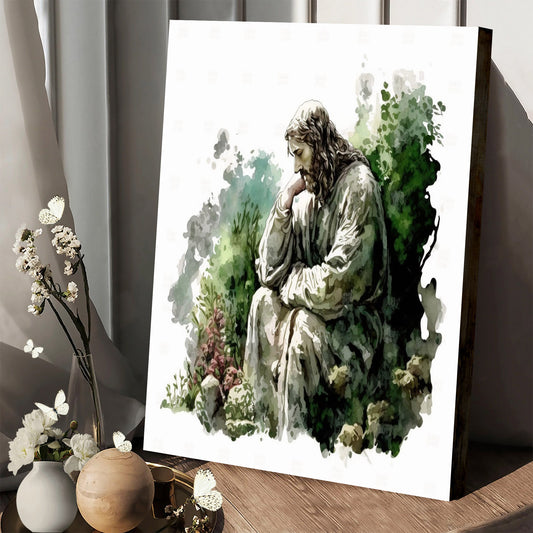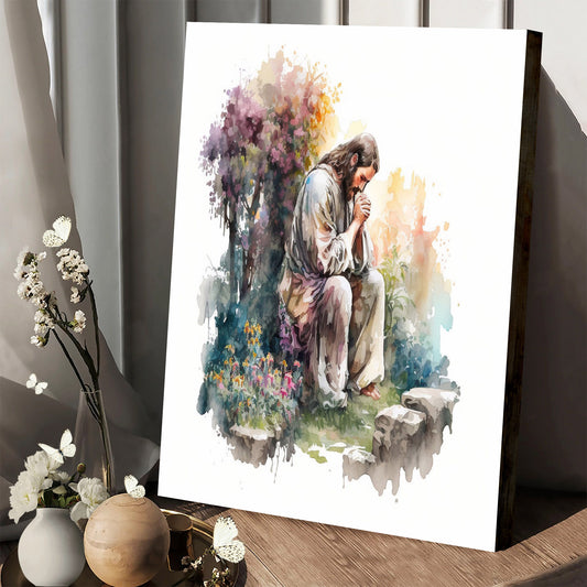 Jesus Praying in Watercolor - Jesus Canvas Art - Christian Wall Canvas