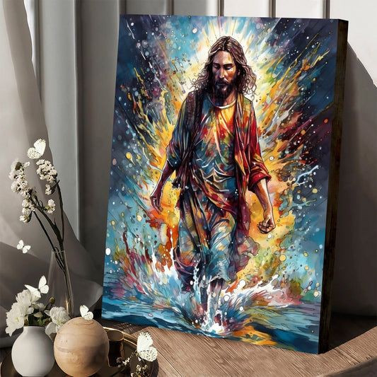 Jesus Walking on Water Digital Watercolor Art Print Savior - Jesus Canvas Art - Christian Wall Canvas
