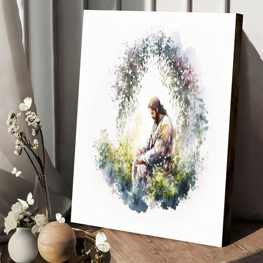 Jesus in the Garden in Watercolor - Jesus Canvas Art - Christian Wall Canvas
