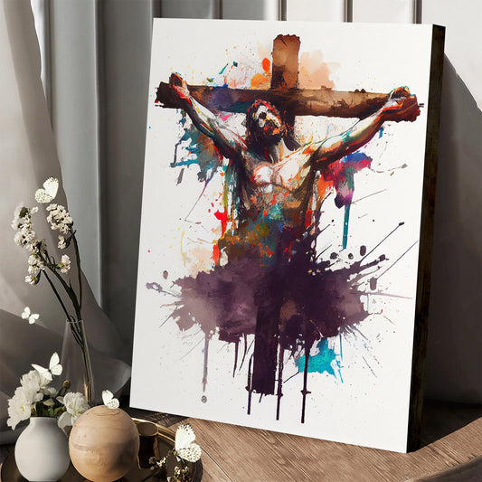 Jesus on the Cross Watercolor Art Jesus on the Cross - Jesus Canvas Art - Christian Wall Canvas