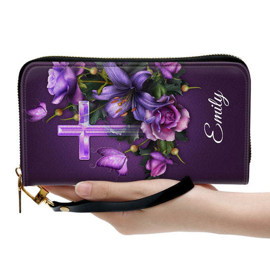 • Women Clutch Purse - Let All You Do Be Done In Love Personalized Leather Clutch Purse 1 Corinthians 1614 Cross And Butterfly