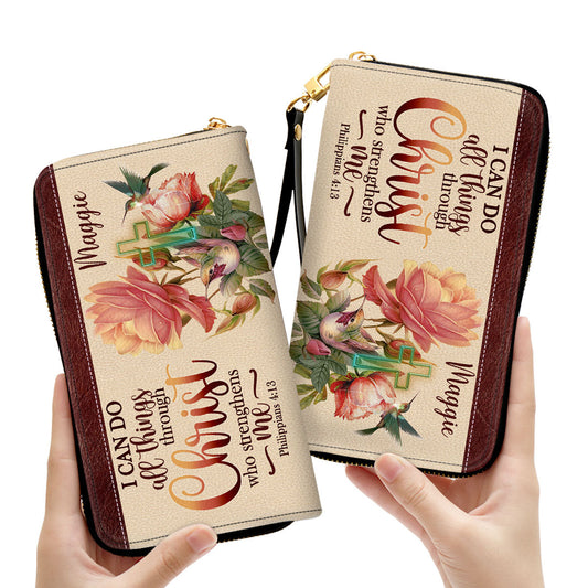 I Can Do All Things Through Christ Philippians 413 Personalized Leather Clutch Purse For Christian Women - Christian Gifts For Religious Women