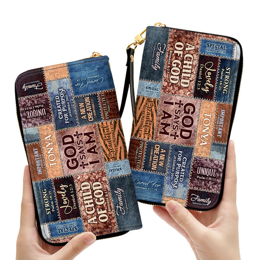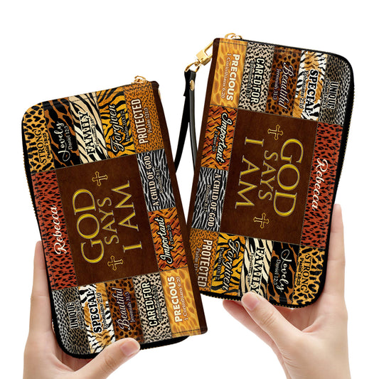 God Says I Am Personalized Leather Clutch Purse For Christian Women - Christian Gifts For Religious Women