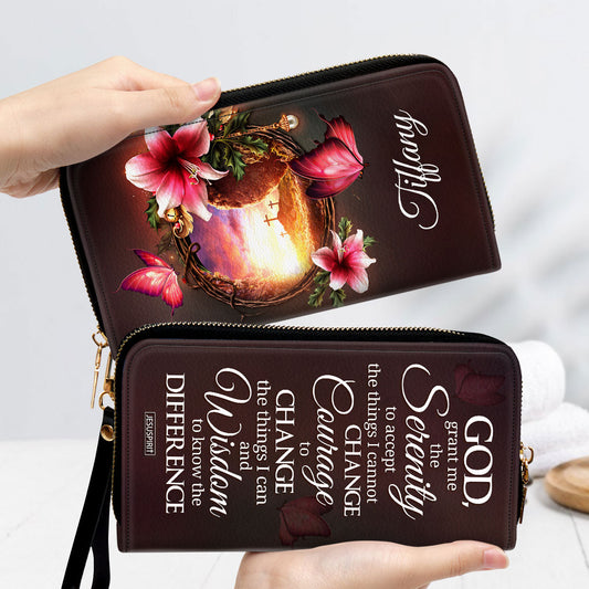 Grant Me The Serenity To Accept The Things I Cannot Change Personalized Zippered Leather Clutch Purse